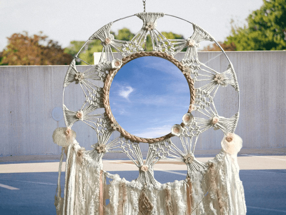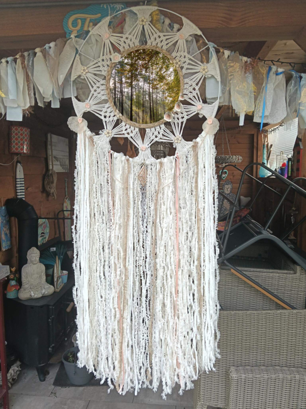 De diameter van de ring van deze prachtige dreamcatcher is maar liefst 45 cm. en de lengte 1.20 mtr.!
