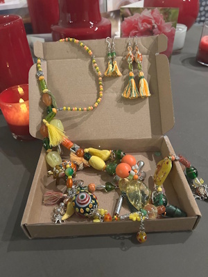 12-11-2025. Weer erg blij mee... alles mooi, maar ben helemaal verliefd op de roze met viltkralen. En armbandje voor mijn moeder...